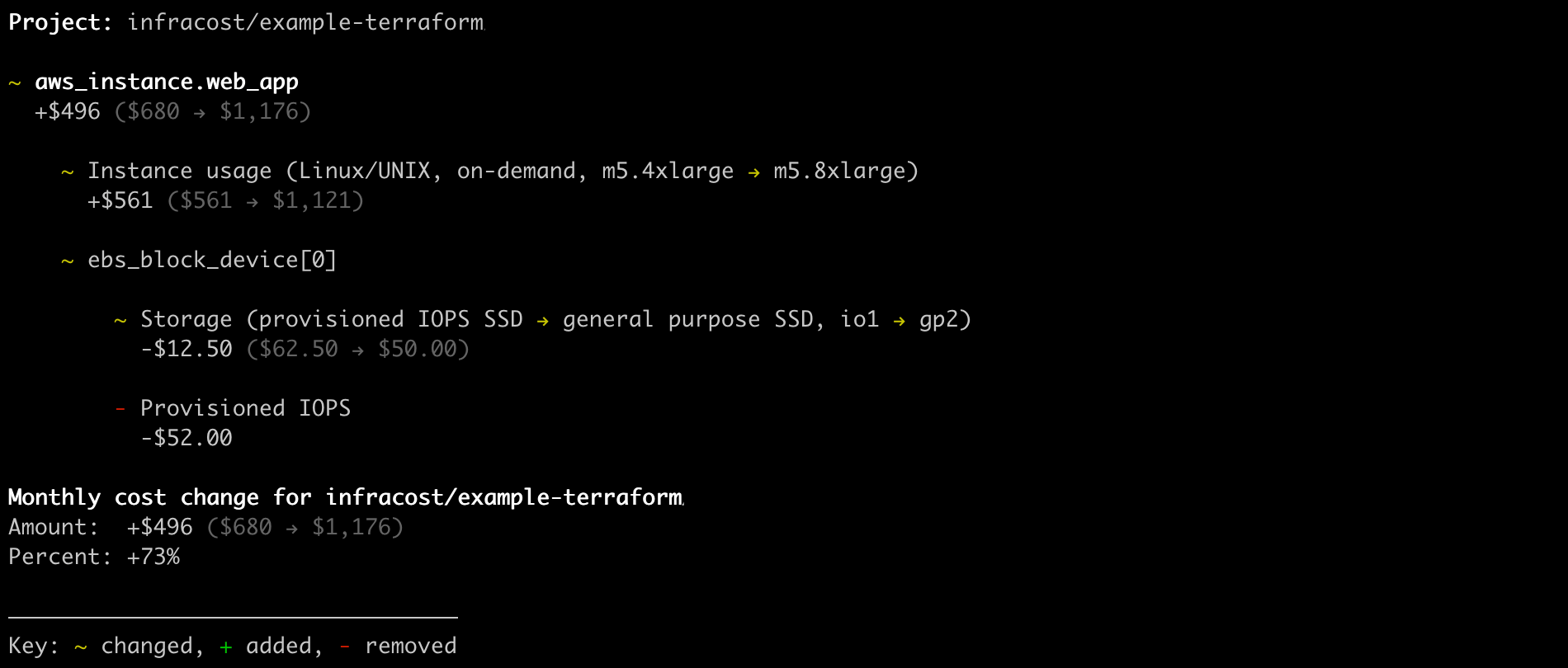 - Infracost does not make any changes to your Terraform state or cloud resources.