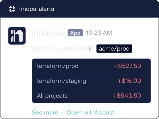 Visibility is only part of the battle. Infracost helps your team prevent cloud waste before Finance ever gets involved.